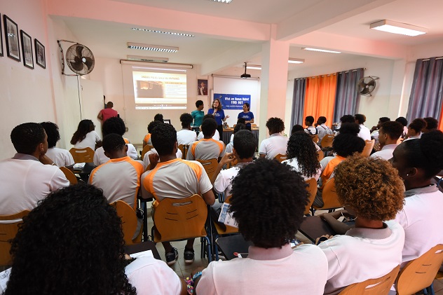 Alunos da Escola Secundária Abílio Duarte, no Palmarejo, Cidade da Praia, assistiram, no passado dia 29 de Janeiro de 2018, a uma palestra sobre Direitos Humanos. a ação decorreu no âmbito da campanha de celebração dos 70 anos da Declaração Universal dos Direitos Humanos.