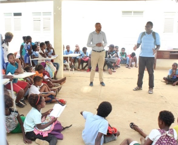 Em Achada Fazenda, o Ponto Focal da CNDHC no concelho, Emanuel Ramos, aproveitou para conversar com um grupo de crianças sobre os direitos humanos e a cidadania.