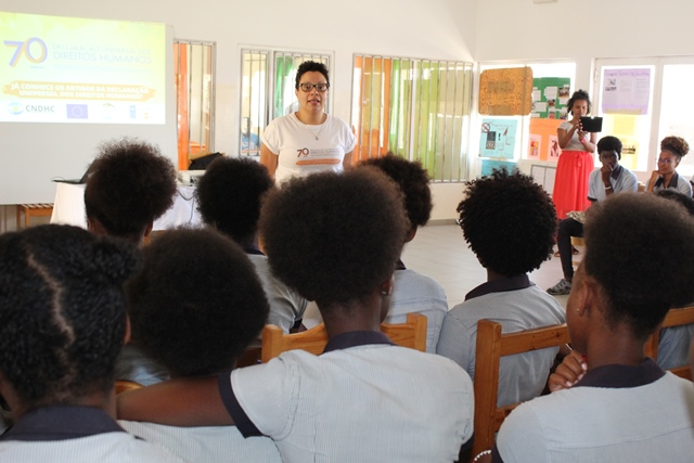 A Escola Secundária de Tarrafal de Santiago acolheu, no passado dia 13 de Junho, uma sessão da campanha de celebração dos 70 anos da Declaração Universal dos Direitos Humanos.