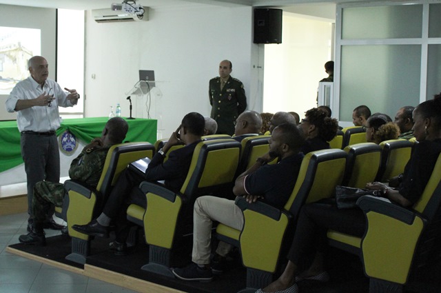 O atelier, que decorreu no Auditório das Forças Armadas na Cidade da Praia, foi ministrado por dois formadores do Instituto Internacional do Direito Humanitário, o coronel Eduardo Bittencourt e o Prof. Roberto Moreno.